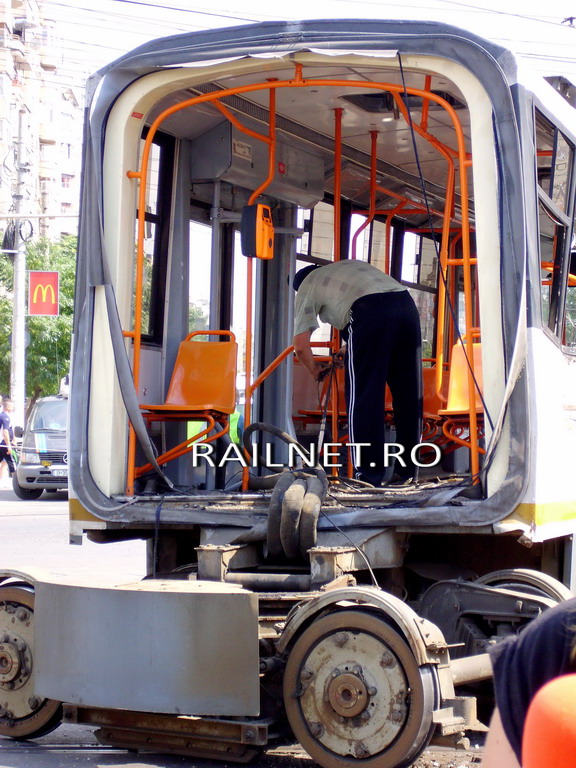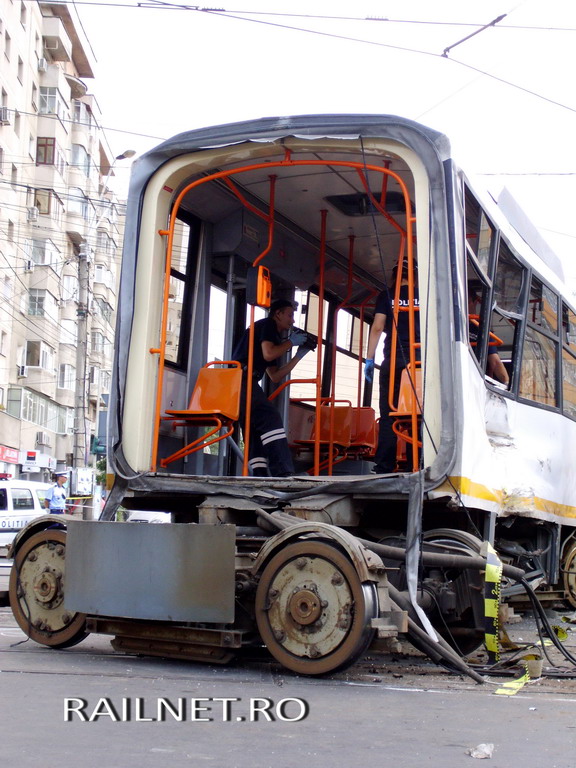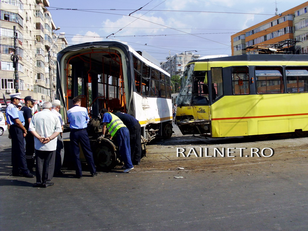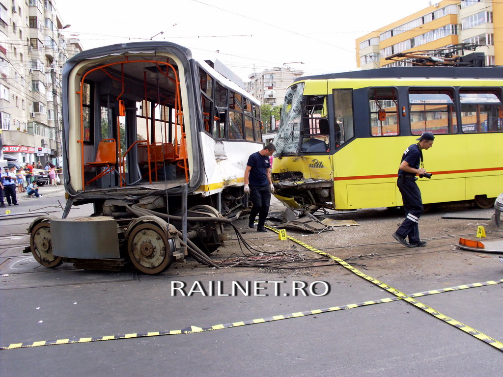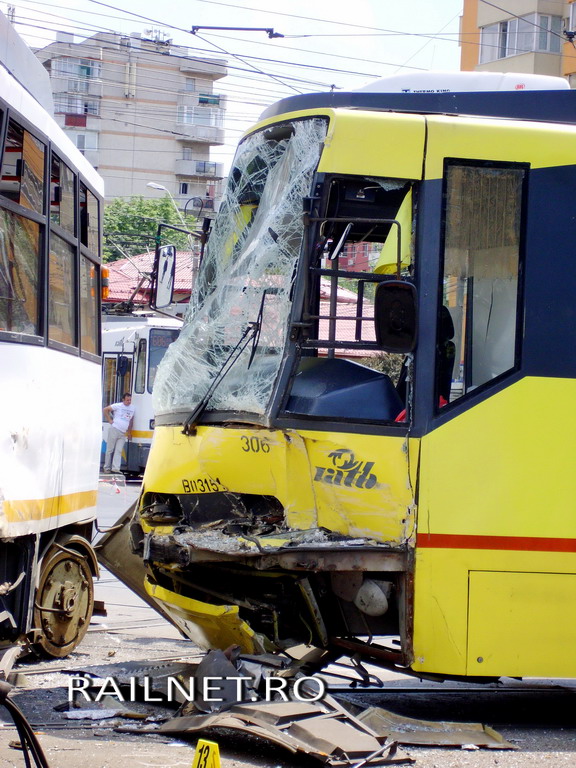 Cel de-al doilea tramvai implicat direct in accident, cel din linia 32, cu numarul 306, a fost acrosat de tramvaiul cu numarul 136, din linia 41.