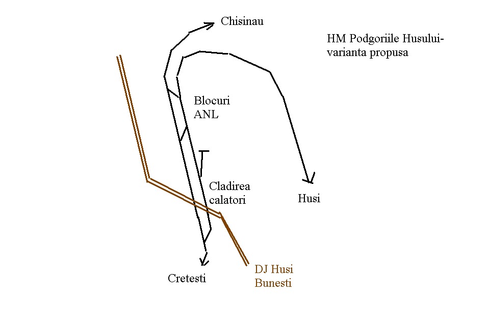 HM Podgoriile Husului- varianta propusa (daca s-ar reconstrui ca si HM Podgoriile Husului si s-ar realiza o cale ferata noua HM Podgoriile Husului- Albita- Chisinau):
