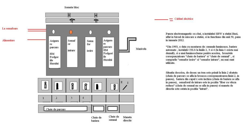 O schita facuta cu ajutorul programului "paint", cu panoul electromagnetic de tip SBW, aflat in biroul de miscare a fostei statii Husi, si aflat in functiune din anii 50' pana la 17 ianuarie 2012.
