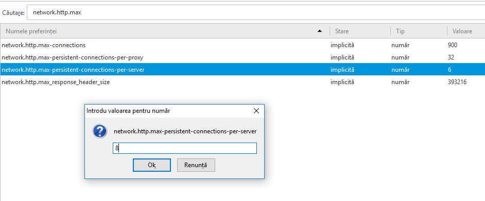 3)odată găsit, dublu-click si schimbam valoarea de la 6 la 8 (7 pentru linkurile de ascultare + 1 pentru eventualele descărcări de aplicații/torente)