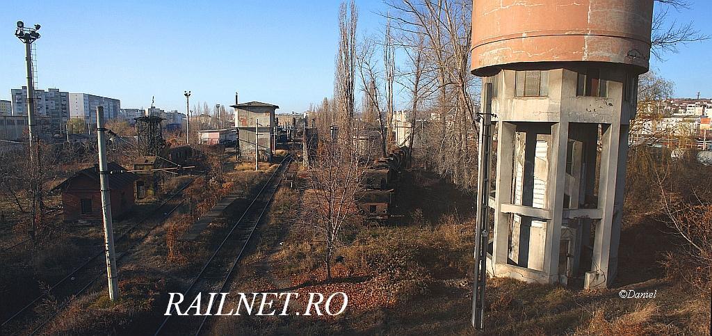 Coborand de pe pasarela pietonala undeva catre capatul dinspre soseaua nationala a acesteia, am intalnit o coloana hidraulica inca in stare buna (cel putin dupa cum arata), dupa care, undeva in dreapta acesteia, la numai 100 de metri, elevatorul de carbune, mecanizat, care si el arata destul de bine strajuit de un canton vechi. Undeva in grupa tehnica se mai aflau si cateva vagoane vechi, de marfa si de calatori. Printre cele de marfa am identificat un batran Gs precum si un fost Hecht de dormit transformat in vagon pentru muncitorii de la Infrastrura. Sub pasarela pietonala construita in anul 1938, se afla garata pe o linie, dormindu-si somnul binemeritat dupa o "viata" de munca, masina 50.469 cuplata cu tenderul masinii 50.715. Dupa aceasta ne vom apropia de turnul de apa, la baza caruia se afla doua masini cu aburi din seria 150.1000, respectiv masinile: 150.1019 si 150.028.