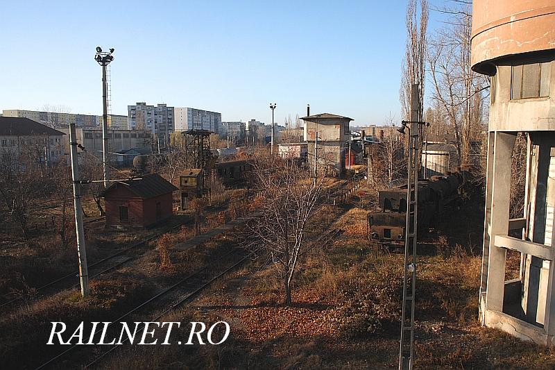 Coborand de pe pasarela pietonala undeva catre capatul dinspre soseaua nationala a acesteia, am intalnit o coloana hidraulica inca in stare buna (cel putin dupa cum arata), dupa care, undeva in dreapta acesteia, la numai 100 de metri, elevatorul de carbune, mecanizat, care si el arata destul de bine strajuit de un canton vechi. Undeva in grupa tehnica se mai aflau si cateva vagoane vechi, de marfa si de calatori. Printre cele de marfa am identificat un batran Gs precum si un fost Hecht de dormit transformat in vagon pentru muncitorii de la Infrastrura. Sub pasarela pietonala construita in anul 1938, se afla garata pe o linie, dormindu-si somnul binemeritat dupa o "viata" de munca, masina 50.469 cuplata cu tenderul masinii 50.715. Dupa aceasta ne vom apropia de turnul de apa, la baza caruia se afla doua masini cu aburi din seria 150.1000, respectiv masinile: 150.1019 si 150.028.
