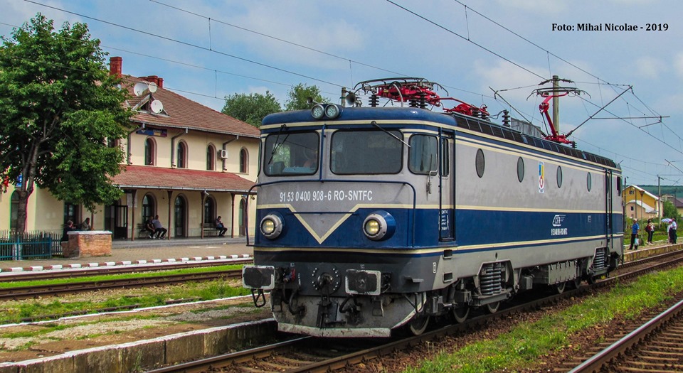 EA 908 RO-SNTFC a Depoului CFR Ploiești surprinsă în Stația CFR TÂRGU FRUMOS ca locomotivă de ajutor pentru trenul Regio 5420-1, Județul Iași - 24.06.2019