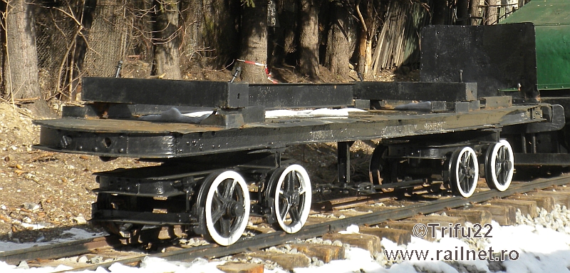 Vagoanele au bandaj cu buze duble din cauza faptului ca era mai eficient ca locomotiva sa le impinga decat se le traga si fiecare vagon cărând câte 4,5 tone de lemn sau chiar mai mult avea tendința sa deraieze. (imagineaza-ti ca dai in marsarier un camoin cu vreo patru sau cinci remorci - nici una nu are tendinta sa mearga drept cand este impinsa de capul tractor)