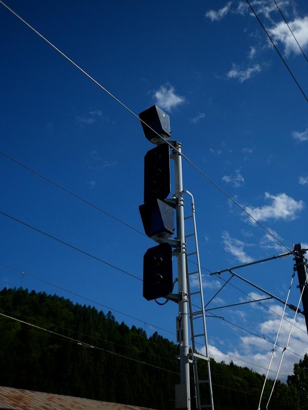 Semnal de parcurs (?), indreptat spre capatul Y. Identic cu cele de iesire. Se pot observa patru focuri pe panoul principal, un semnal de chemare/manevra/iesire pe stanga pe o placa lata aflata mai in fata si sub cele patru focuri de pe panoul principal si doua cutii in stilul celor gasite pe semnalele repetitoare. De ce ar fi doua? Pe un semnal de parcurs?